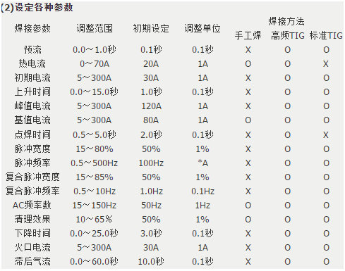 (6)使用预流功能、初期电流功能、上坡调整功能就可以防止、焊接开始部气体保护(焊)不良现象、起弧失误、薄板熔化陷落或者熔化不足等缺陷