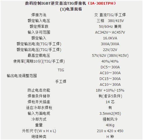 (1)数字逆变技术 ·IGBT控制 ·轻便耐用 ·工作频率高,抗外界干扰能力强 ·全焊接过程可控调节 ·任意设定脉冲宽度 ·操作简单,可一键操作全数字化逆变脉冲交直流氩弧焊机IA-3001TPH